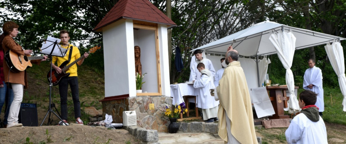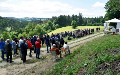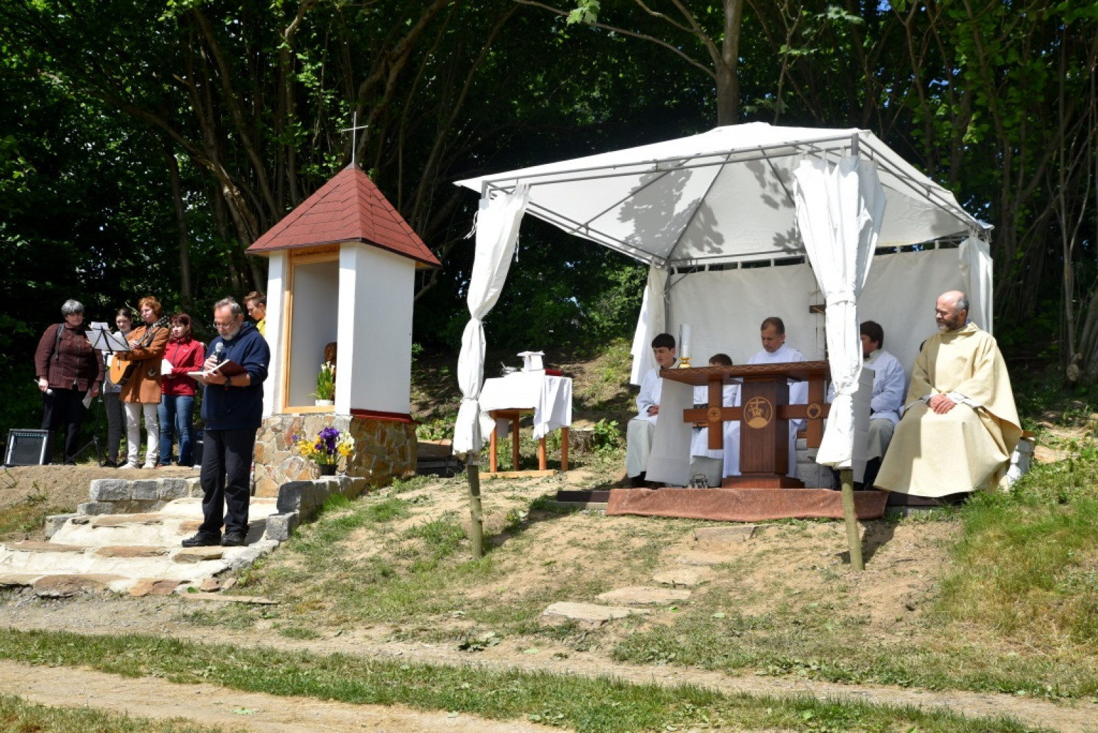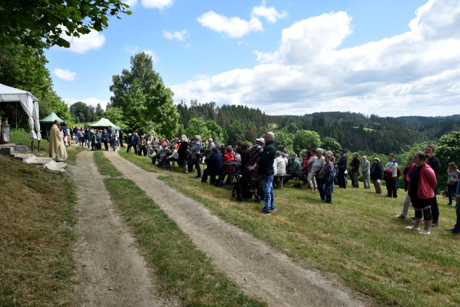 V 10.00 hod. vyšlo procesí od křižovatky v Hamrech. Po příchodu k nové kapličce začala cca. v 11.00 hod. mše svatá za chataře a osadníky z Hamrů; její součástí bylo vlastní svěcení kapličky.
