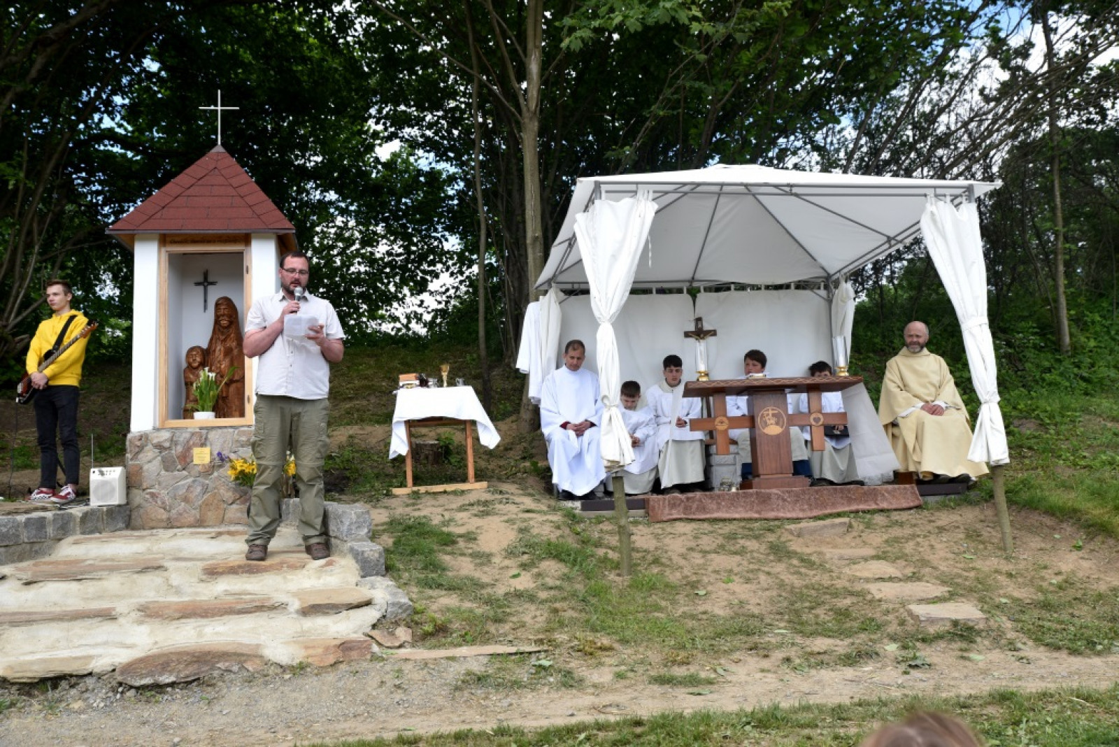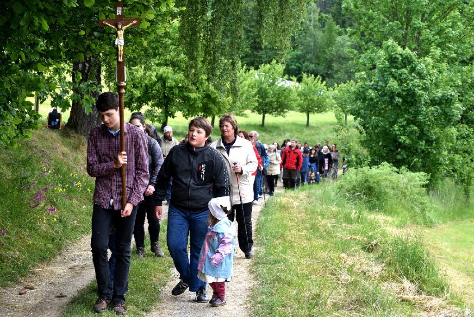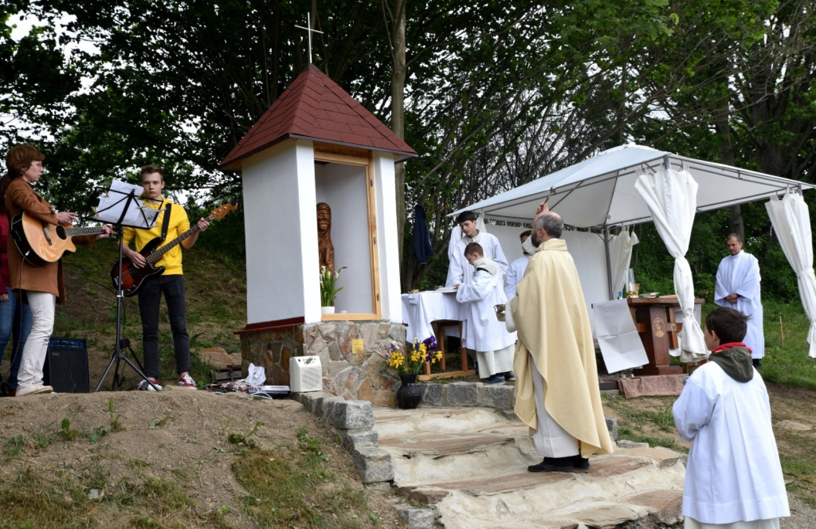 V 10.00 hod. vyšlo procesí od křižovatky v Hamrech. Po příchodu k nové kapličce začala cca. v 11.00 hod. mše svatá za chataře a osadníky z Hamrů; její součástí bylo vlastní svěcení kapličky.